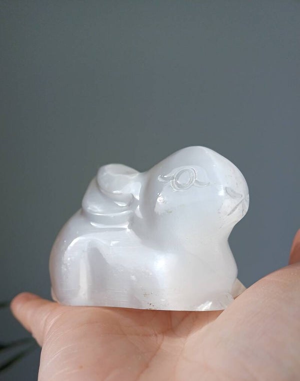 Satijnspaat / seleniet carving (konijn)