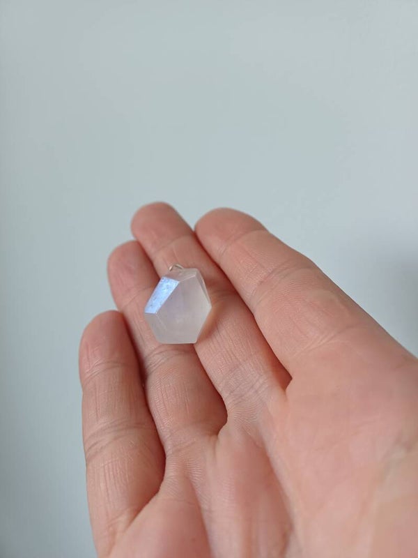Mooie maansteen free form hanger met mooie lichtblauwe flash. De hanger heeft een zilveren oogje (s925).