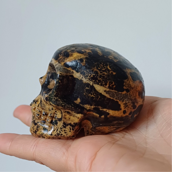 De spirituele betekenis van een skull (schedel) komt voort uit eeuwenoude symboliek en filosofie. In veel culturen wordt de schedel gezien als een krachtig beschermingssymbool tegen negatieve energie. De schedel herinnert ons eraan dat het leven tijdelijk is en dit besef moedigt persoonlijke groei en het loslaten van oude patronen aan, zodat er ruimte ontstaat voor een nieuw fase. Het staat voor innerlijke kracht en moed. Door de link met sterfelijkheid nodigt het uit tot reflectie en bewust leven, waardoor je keuzes maakt die echt bij je passen.
