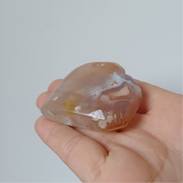 Agaat werd in de oudheid al gebruikt als gelukssteen en om zijn genezende werking. Agaat brengt geluk in de liefde en stelt je open voor anderen. Agaat lost psychische spanningen op en geeft een gevoel van veiligheid. Naast de algemene eigenschappen van agaat is flower agaat een liefdevolle steen die je beschermt tegen angsten en je troost biedt.