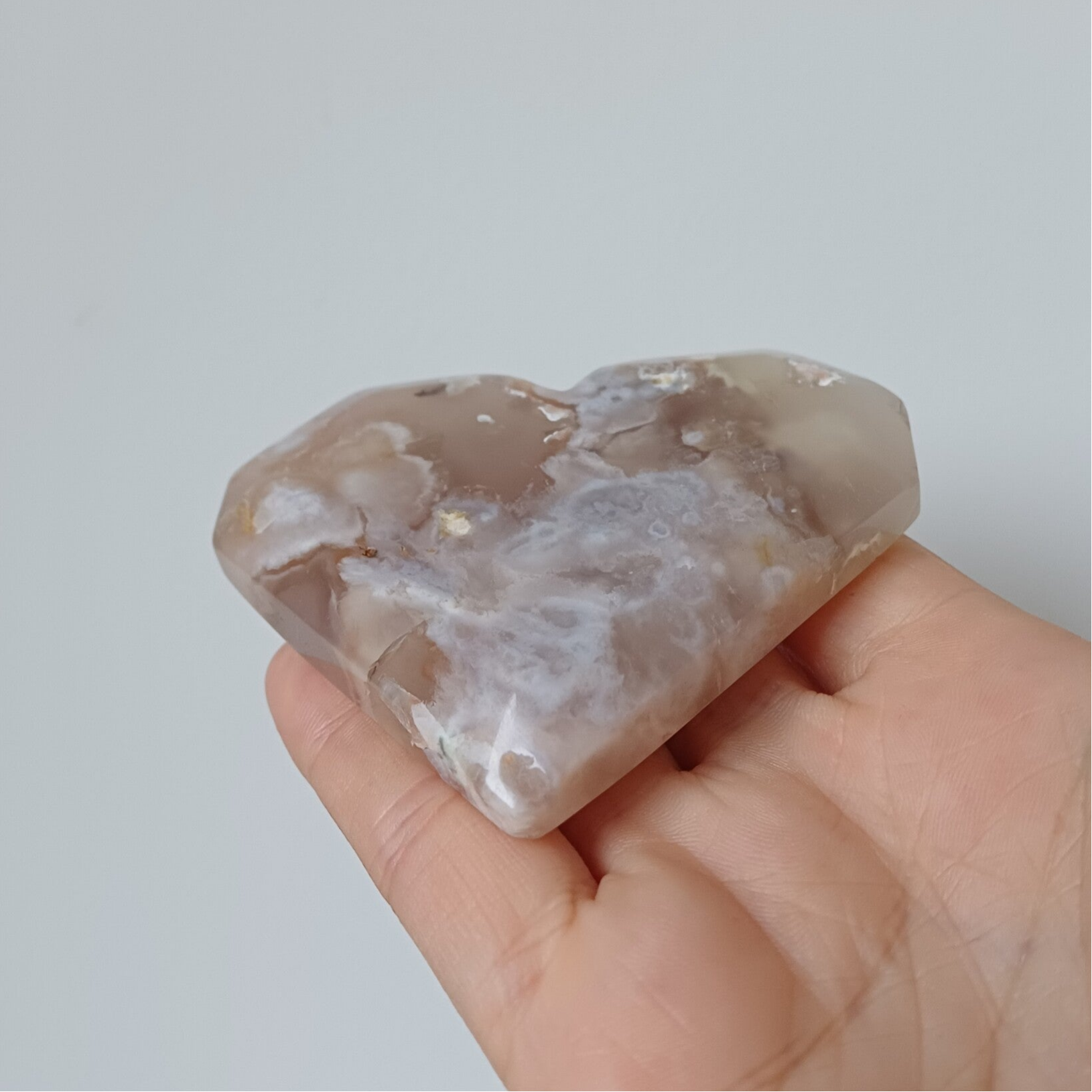 Agaat werd in de oudheid al gebruikt als gelukssteen en om zijn genezende werking. Agaat brengt geluk in de liefde en stelt je open voor anderen. Agaat lost psychische spanningen op en geeft een gevoel van veiligheid. Naast de algemene eigenschappen van agaat is flower agaat een liefdevolle steen die je beschermt tegen angsten en je troost biedt.