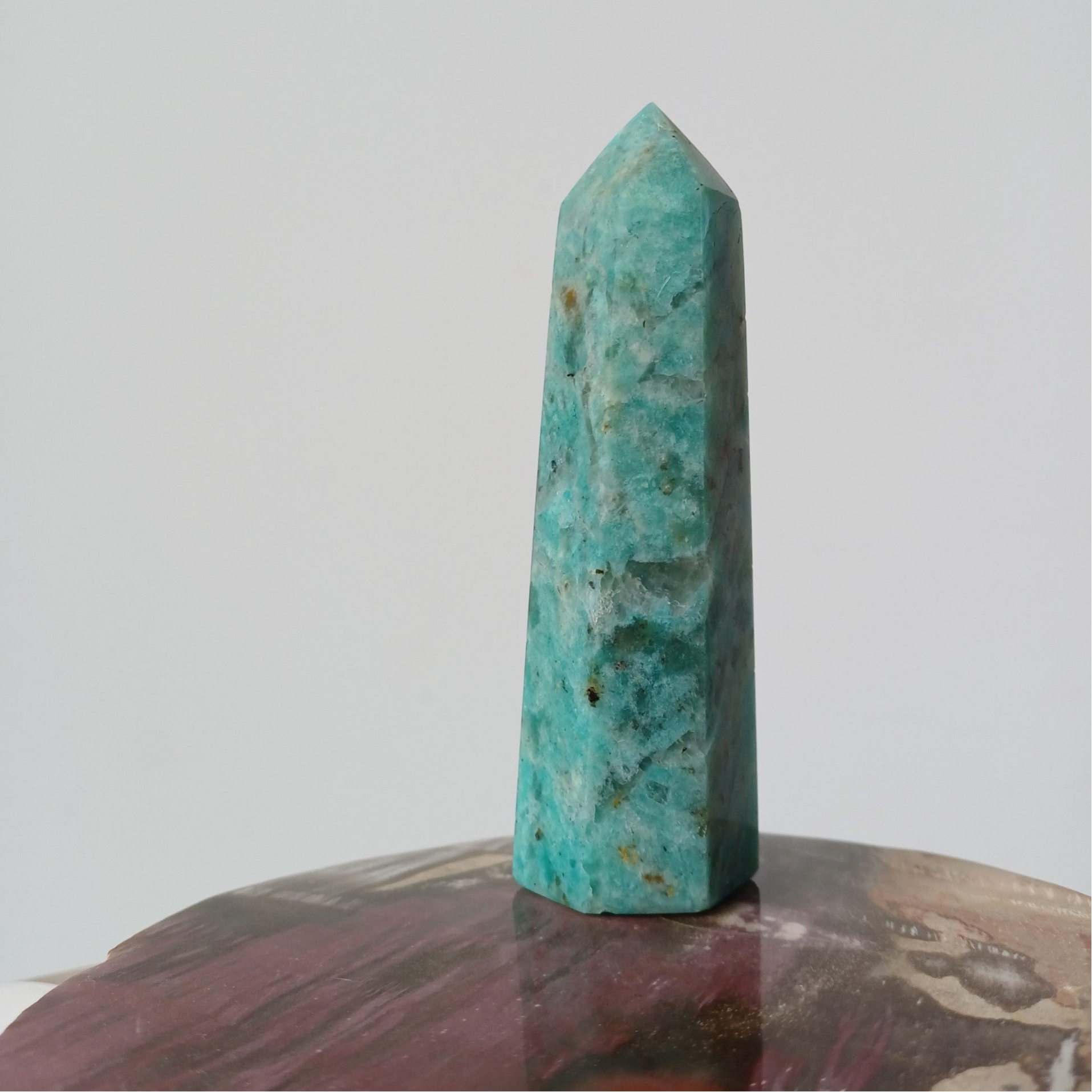 Mooie amazoniet toren met rookkwarts.