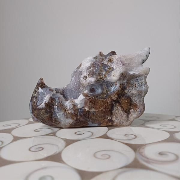 De draak staat symbool voor oeroude wijsheid, kracht en bescherming. Een drakenschedel helpt je toegang te krijgen tot diepe spirituele kennis en ondersteunt transformatie en groei. Het is een krachtig symbool dat negatieve energie weert en innerlijke kracht versterkt. Daarmee vormt de drakenschedel een magisch hulpmiddel voor wie zich wil verbinden met het mysterie en de magie van het onbekende.
