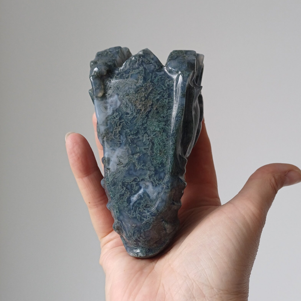 Mosagaat werkt reinigend, helpt tegen nervositeit en geeft een band met de aarde. Mosagaat wordt daardoor een gelukssteen voor tuinlieden en boeren genoemd.