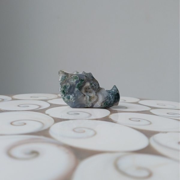 Mosagaat werkt reinigend, helpt tegen nervositeit en geeft een band met de aarde. Mosagaat wordt daardoor een gelukssteen voor tuinlieden en boeren genoemd.
