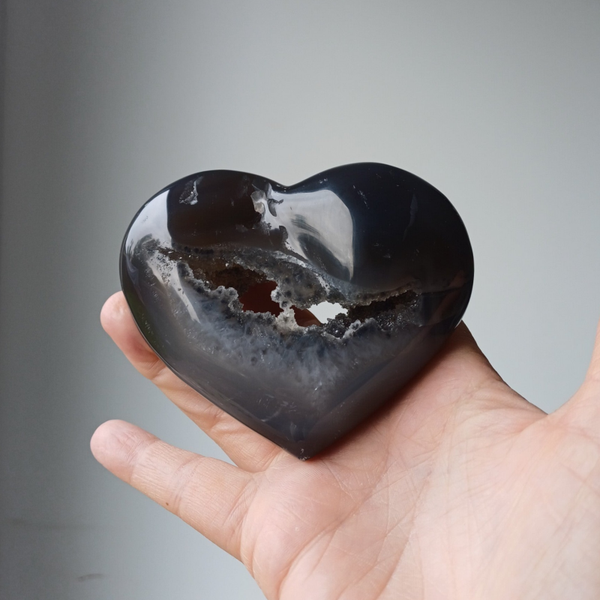 Prachtig agaat hart met grote open twinkelende oogvormige druzy.