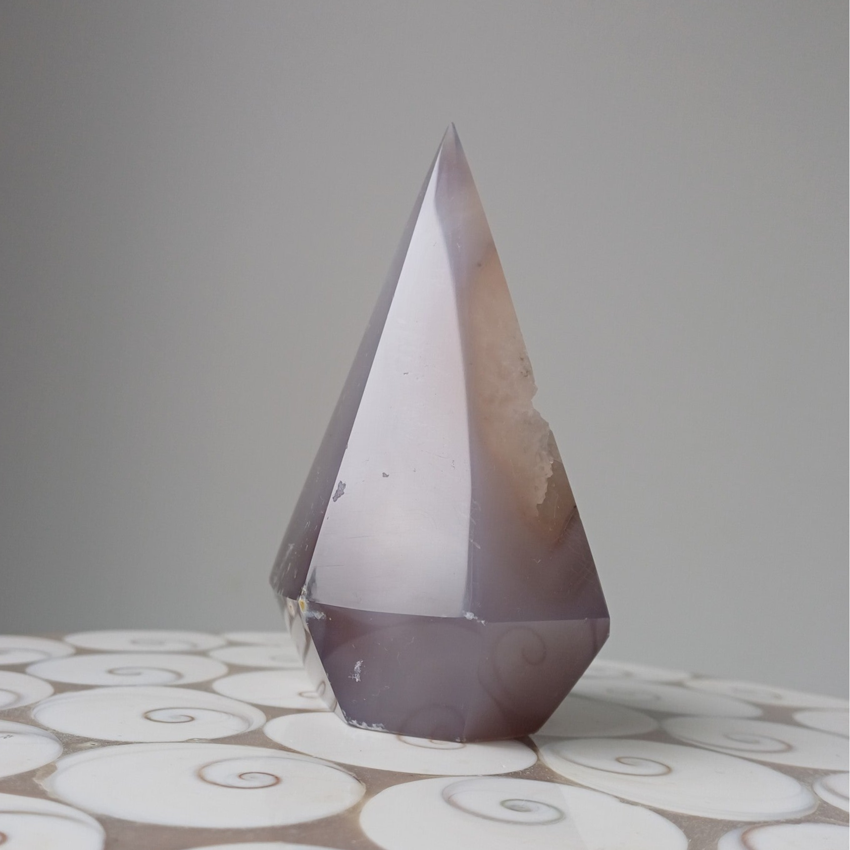 Prachtige facetgeslepen agaat punt met een twinkelende druzy.