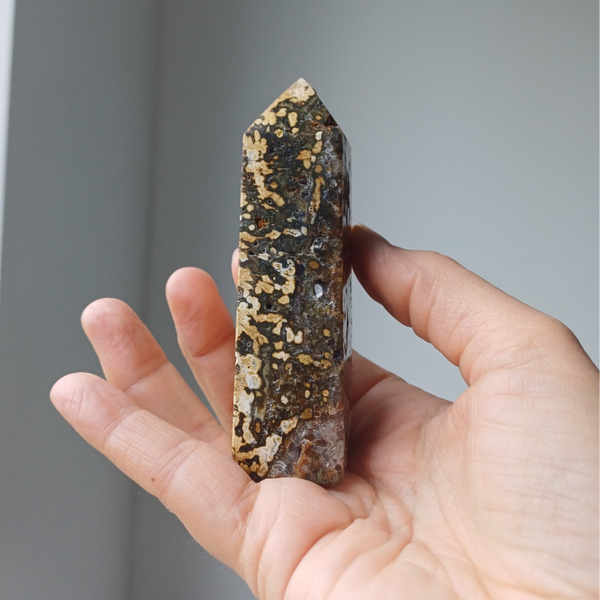 "IK VERJAAG STRESS"Mooie toren van oceaan jaspis. Jaspis onspant, verjaagd stress en geeft innerlijke harmonie. Jaspis maakt begrijpend.