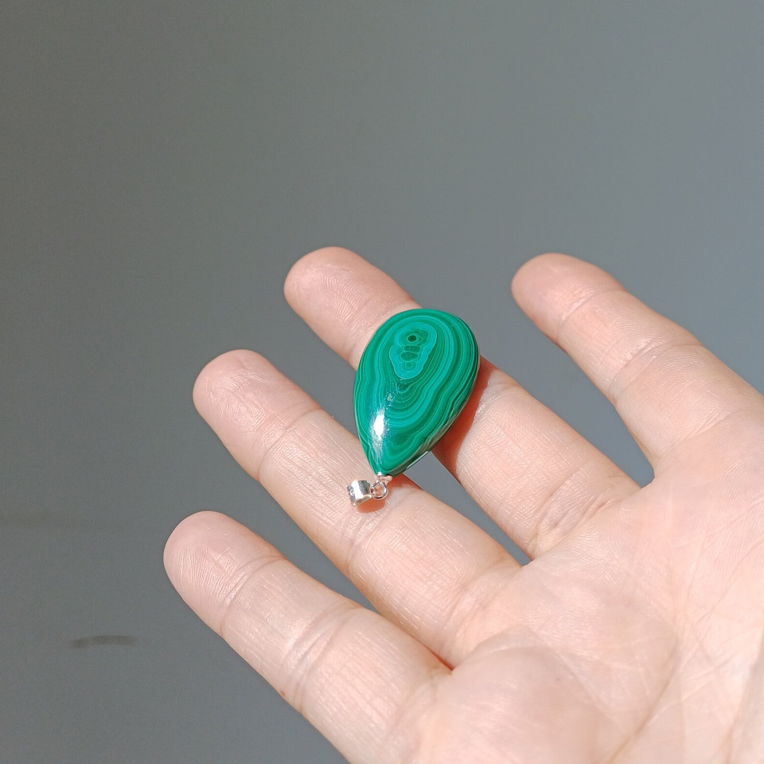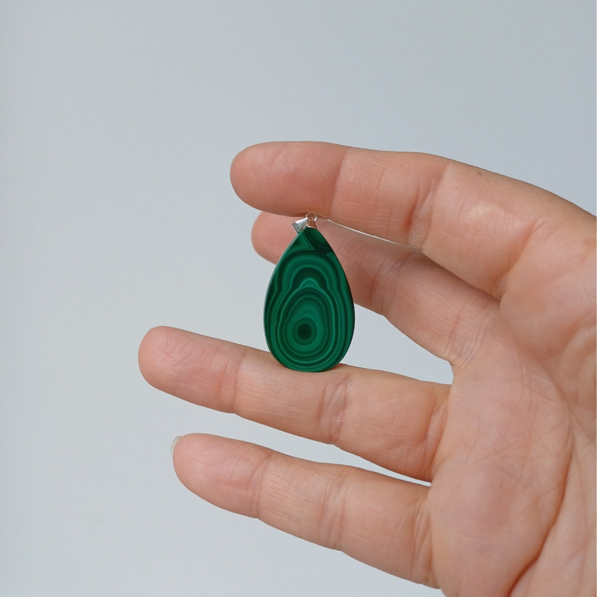 Prachtige malachiet druppel hanger. De hanger heeft een zilveren oogje (S925).
