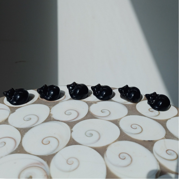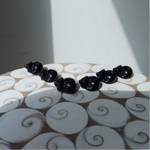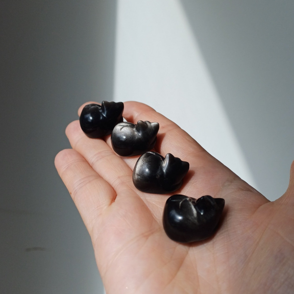 Zilver obsidiaan carving (slapende kat)