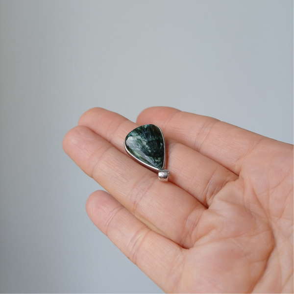 Serafiniet wordt dan ook de steen van engelen en spirituele verlichting genoemd. Het zou contact met hogere energieën (gidsen) vergemakkelijken en helpt bij meditatie. Het bevordert spirituele groei en geeft inzicht in je levenspad. Serafiniet heeft een zachte, maar sterke beschermende energie en helpt emoties in balans te brengen. Het werkt ondersteunend bij het loslaten van oude patronen en is rustgevend om zo je hart te openen.