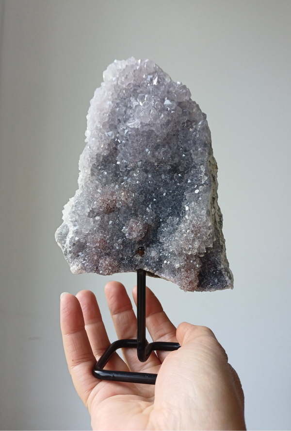 Amethist staat bekend als een krachtige steen voor ontspanning, het verlichten van stress en het bevorderen van een diepe innerlijke rust. De bloemvormige structuur van de amethist roos symboliseert natuurlijke balans en harmonie, wat ook het energetisch evenwicht in je leefruimte kan ondersteunen. Het is een zeer beschermende steen.