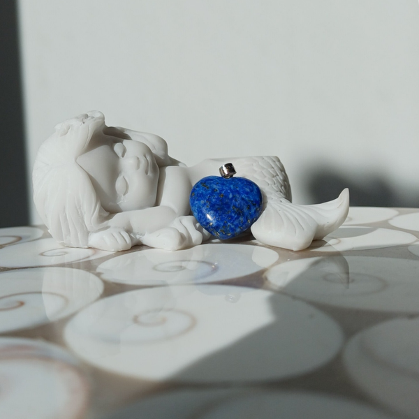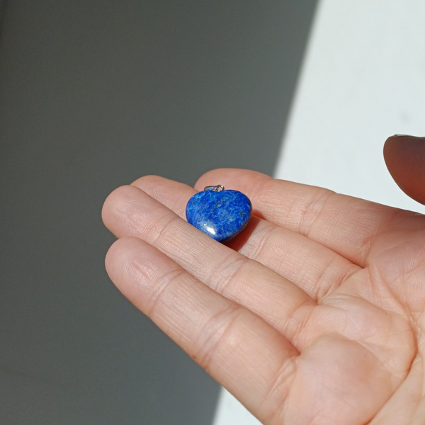 Prachtige hart hanger van lapis lazuli met een beetje pyriet.