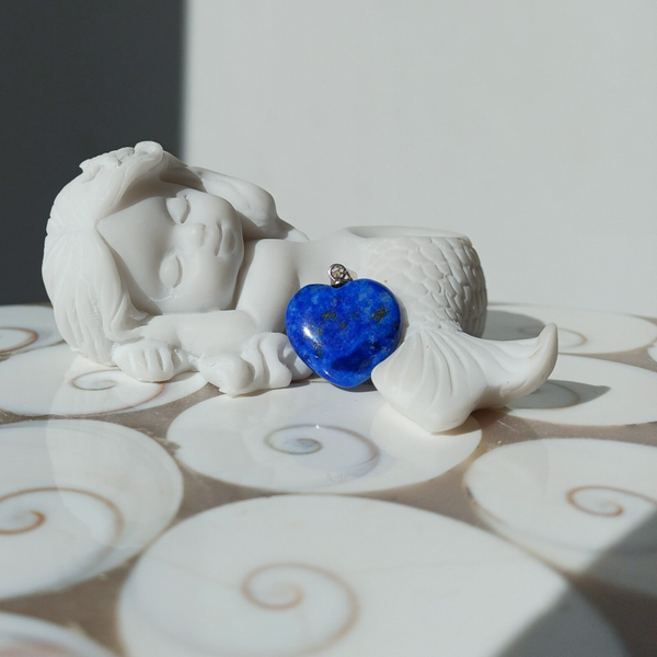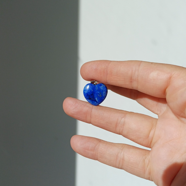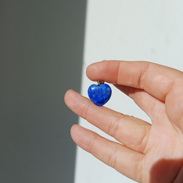 Prachtige hart hanger van lapis lazuli met een beetje pyriet.