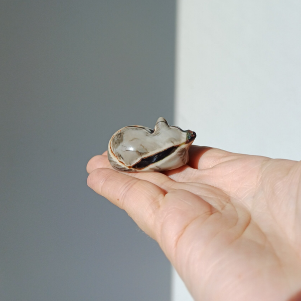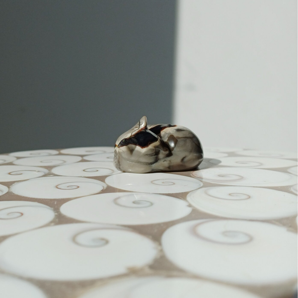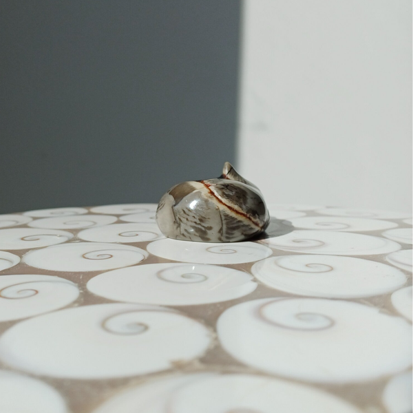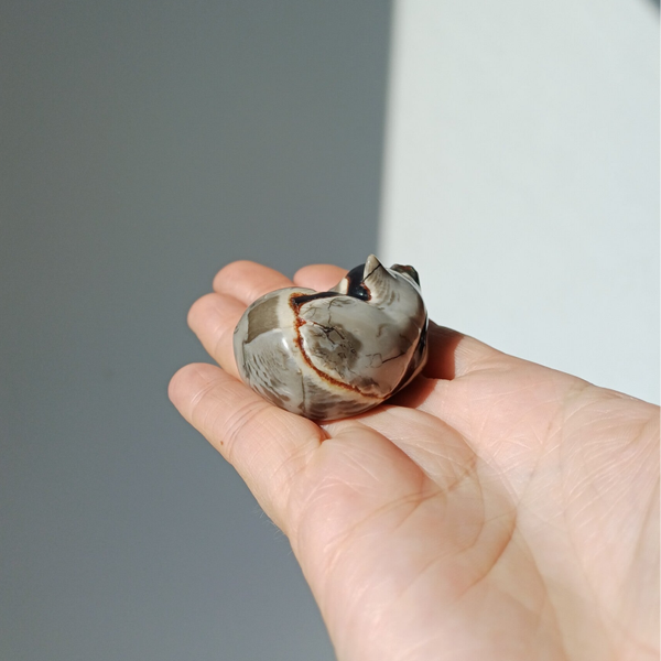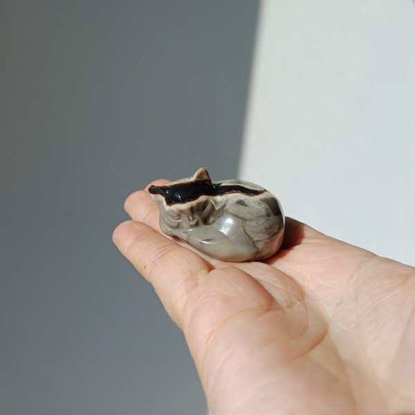 Vulkaan agaat carving (slapende kat) met uv-reactie