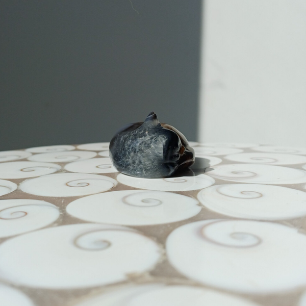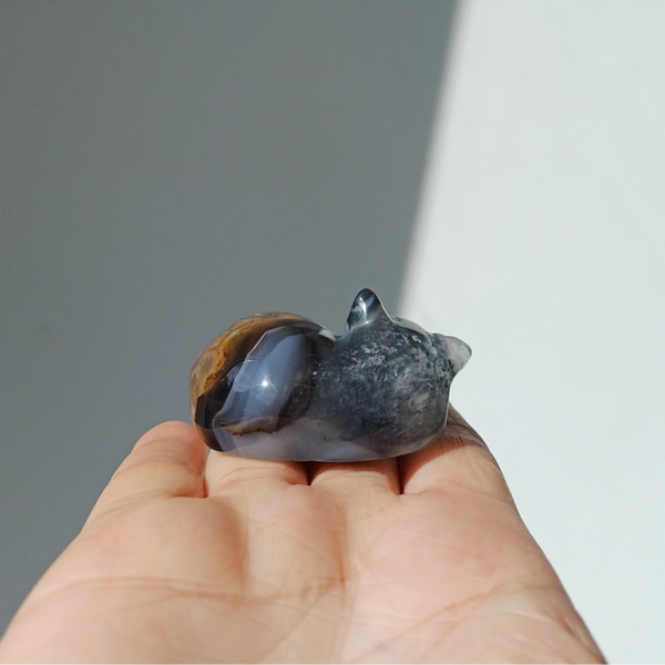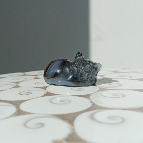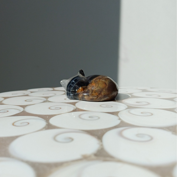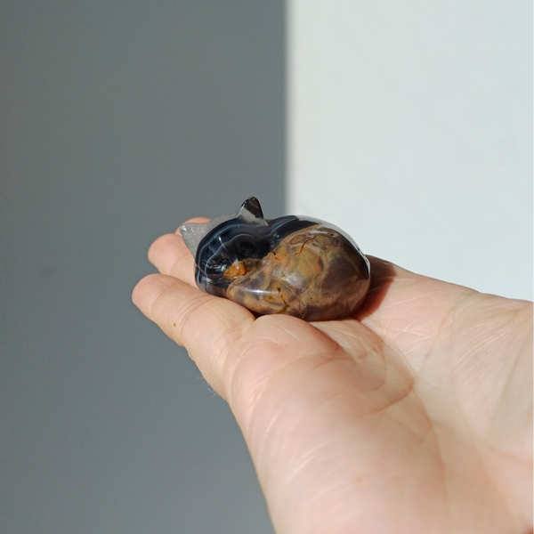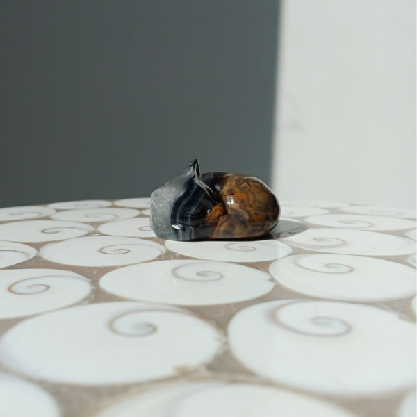 Vulkaan agaat carving (slapende kat) met uv-reactie