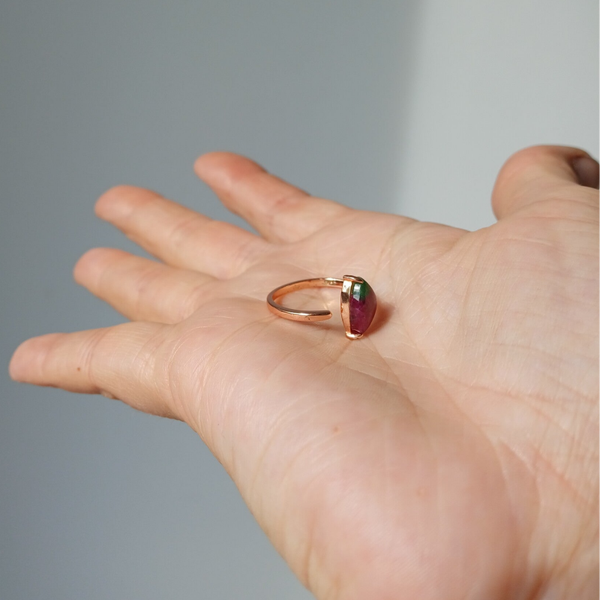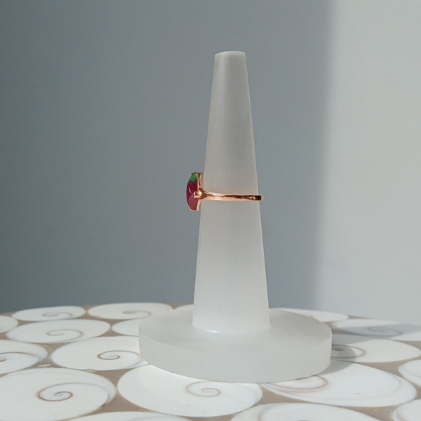 Prachtige verstelbare rosé-plated echt zilveren ring (s925) met robijn in zoisiet.