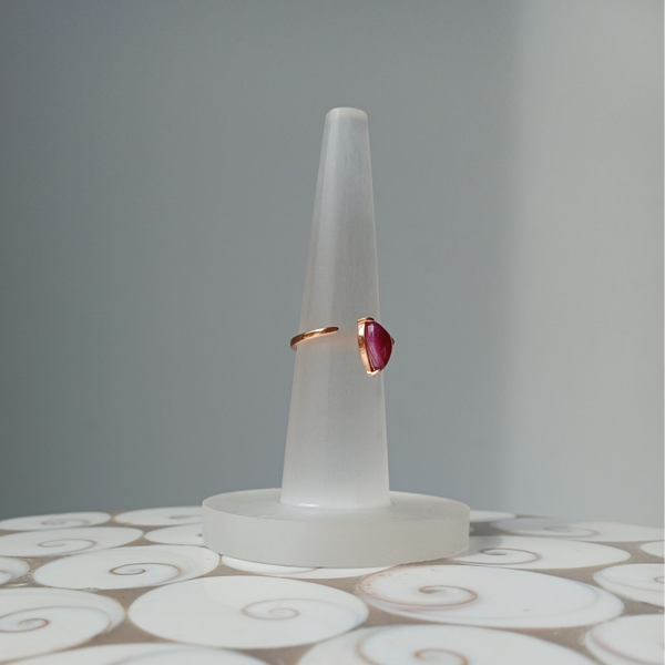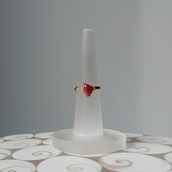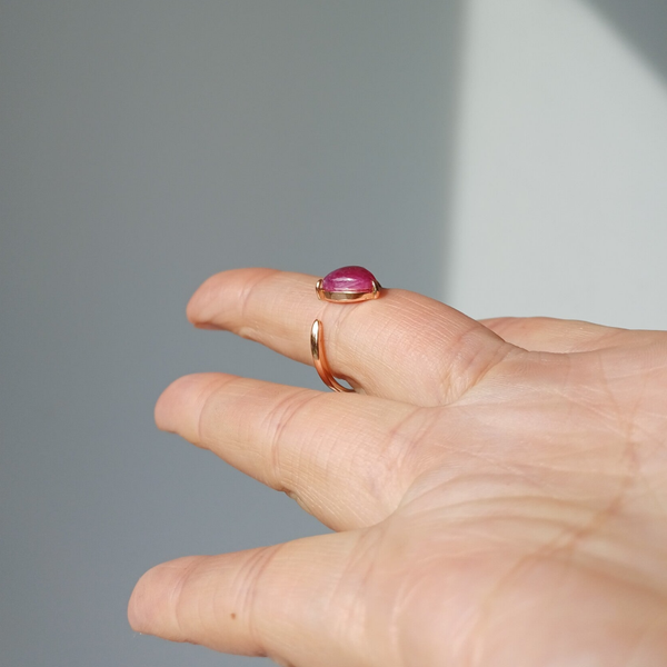 Prachtige verstelbare rosé-plated echt zilveren ring (s925) met een robijn.