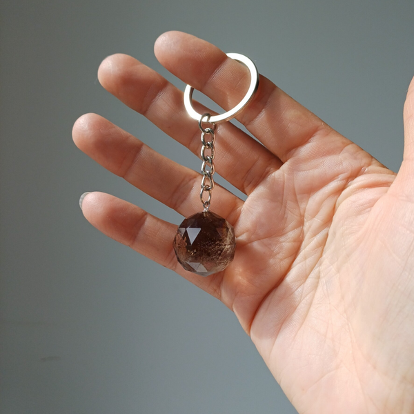 Prachtige gefacetteerde bol sleutelhanger van rookkwarts.