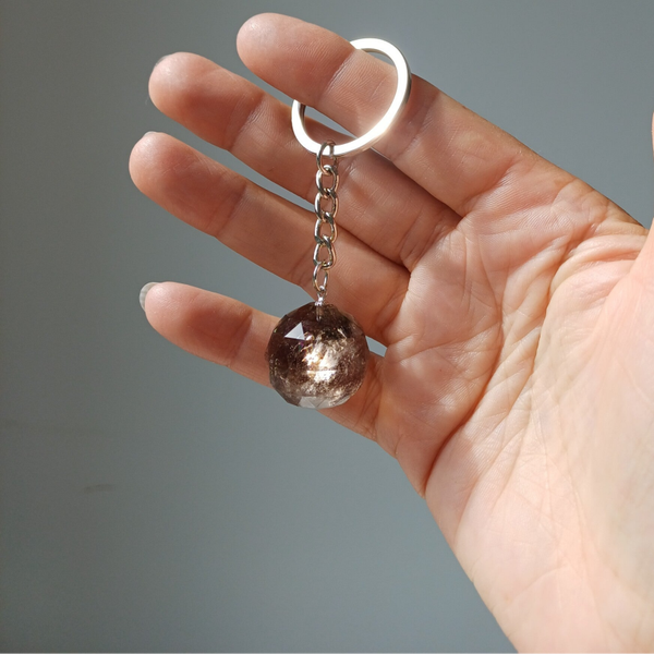 Gefacetteerde bol sleutelhanger rookkwarts