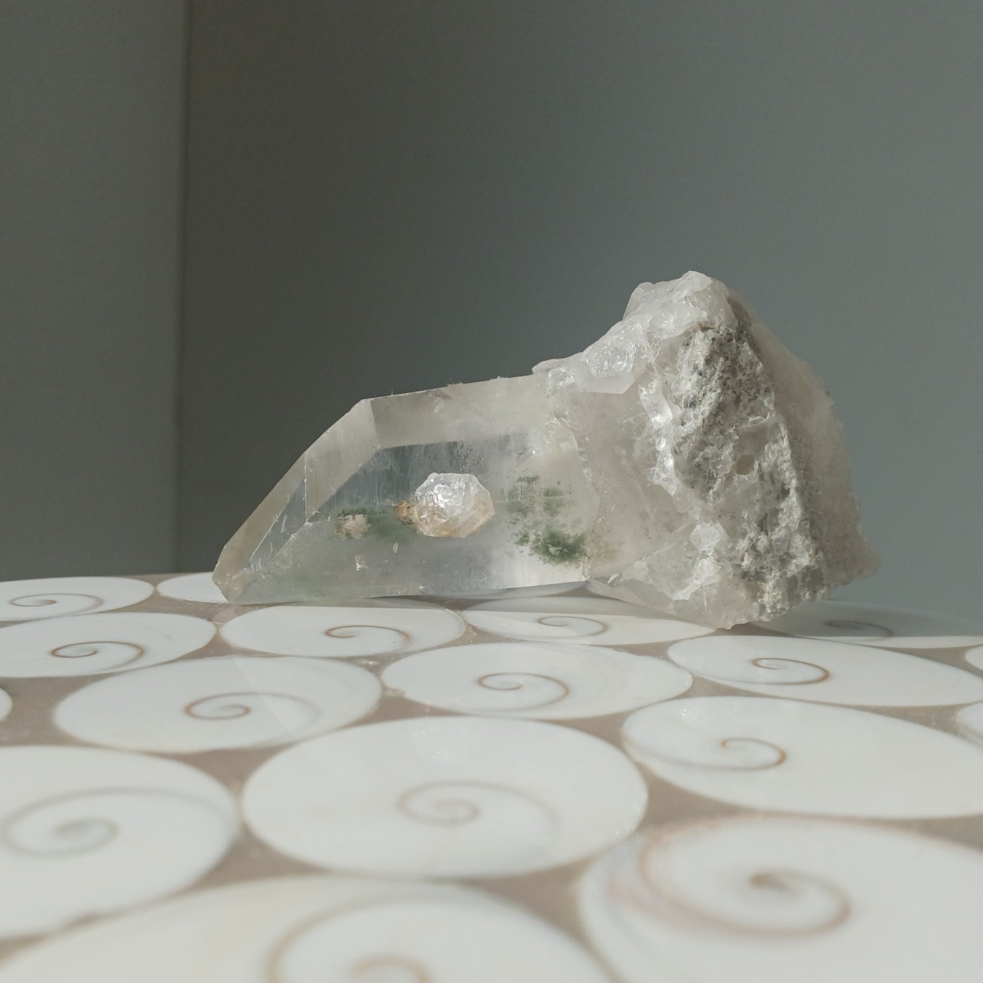 Lodoliet (of sjamaankwarts, garden quartz, droomkwarts, fantoomkwarts, chlorietkwarts) bevordert de visualisatie, versterkt je intuïtie en werkt reinigend. Lodoliet kan je dromen en wensen laten uitkomen