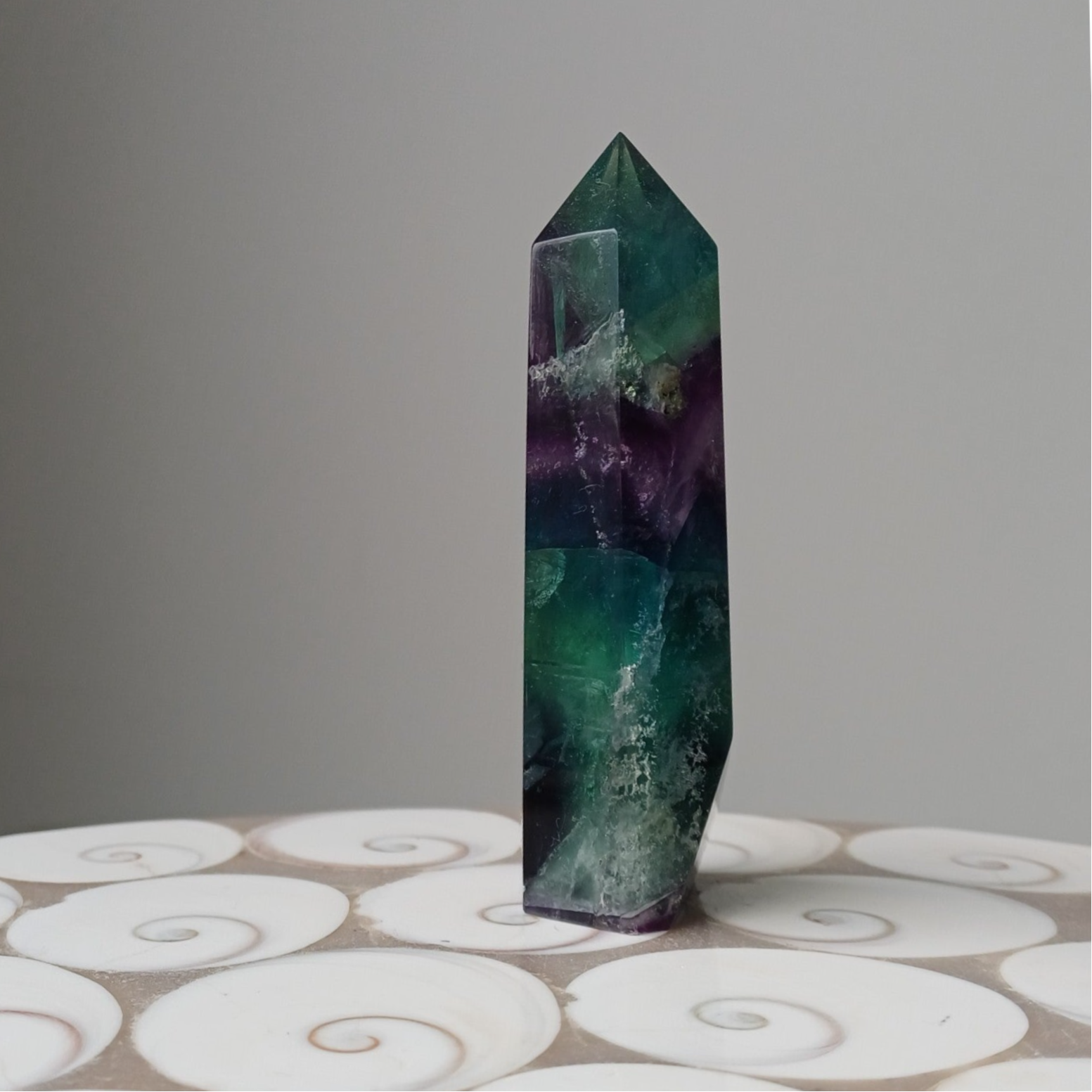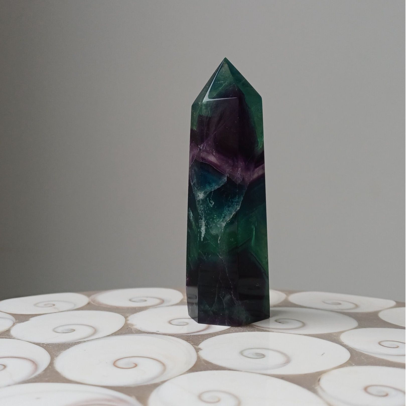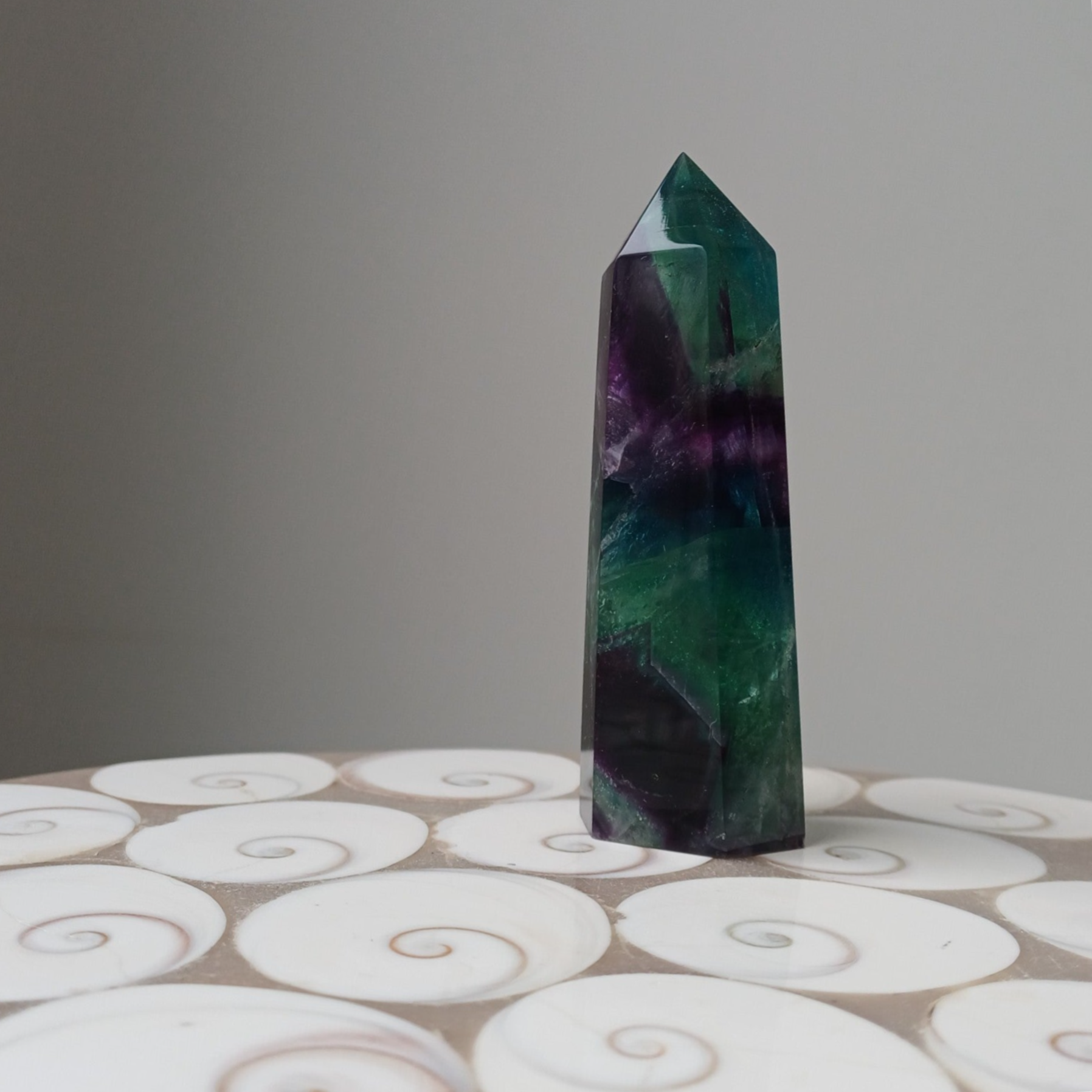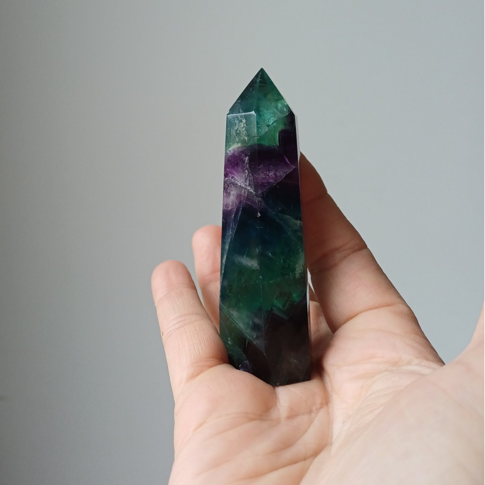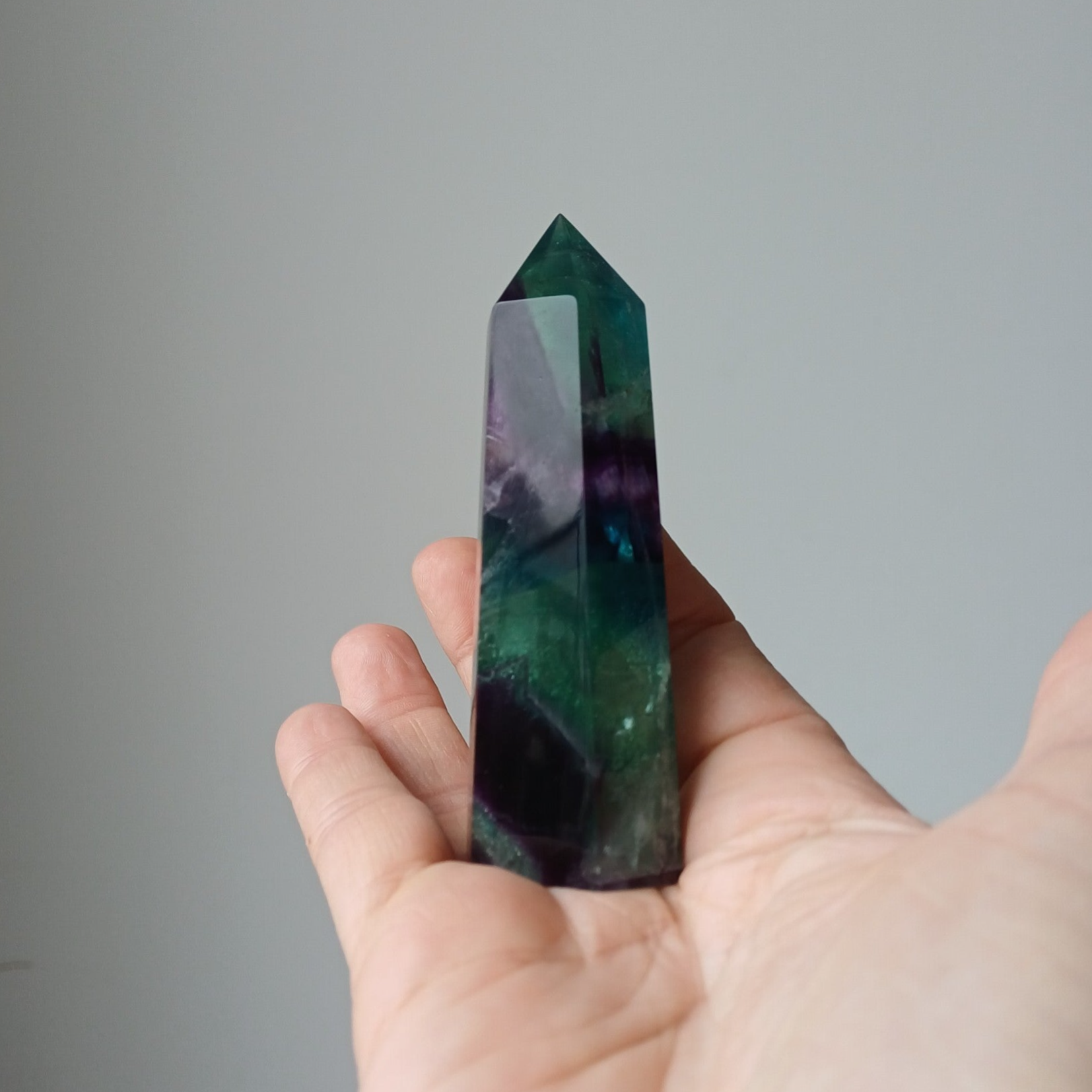 Prachtige fluoriet toren met regenboogjes.