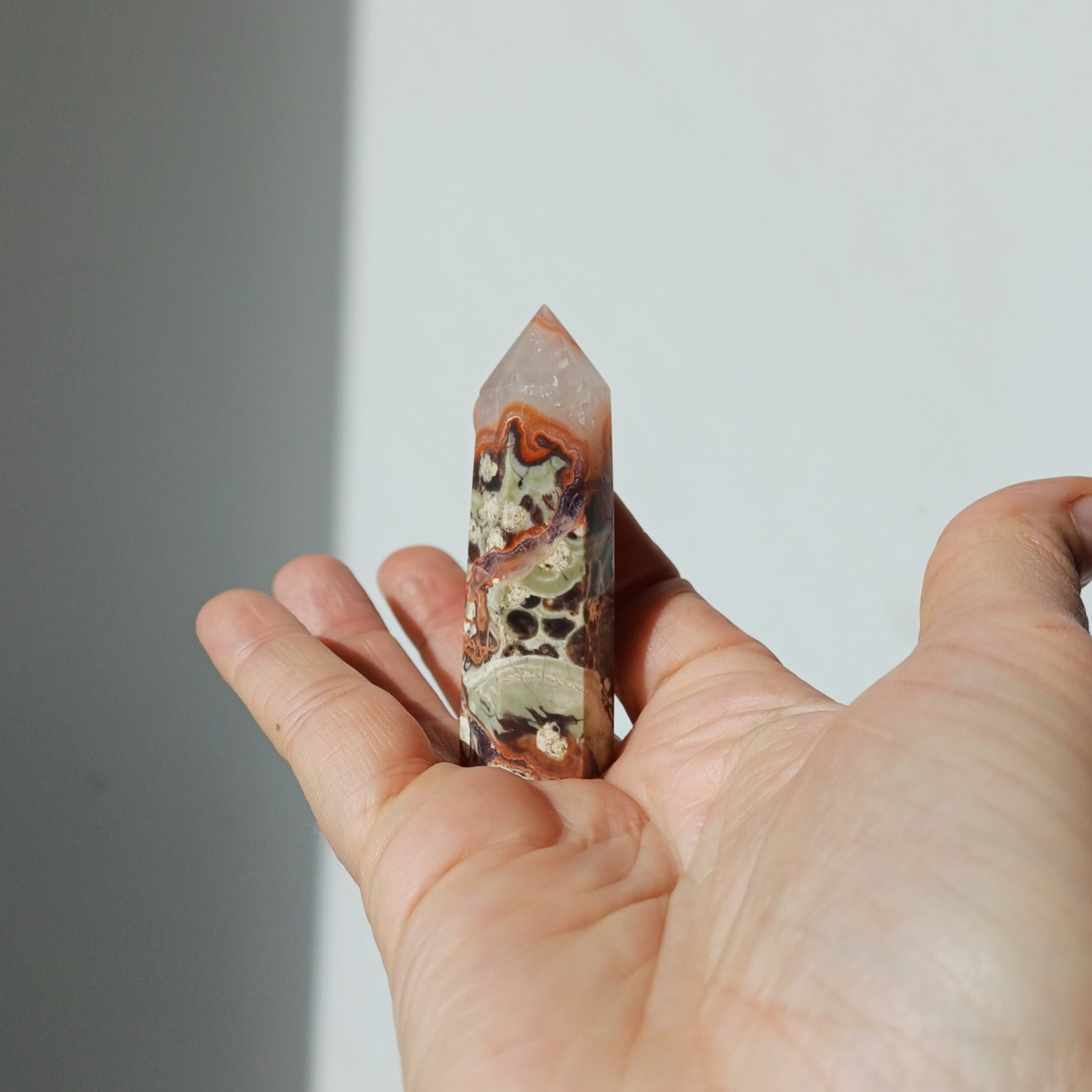 Rhyoliet geeft je balans en bevordert het evenwicht in emoties. Het zorgt voor helderheid in hoofd en hart. Rhyoliet zorgt ervoor dat je de zaken goed overziet en helpt je doelen te verwezelijken. Rhyoliet zorgt ervoor dat jij jezelf accepteert en in je kracht komt te staan.